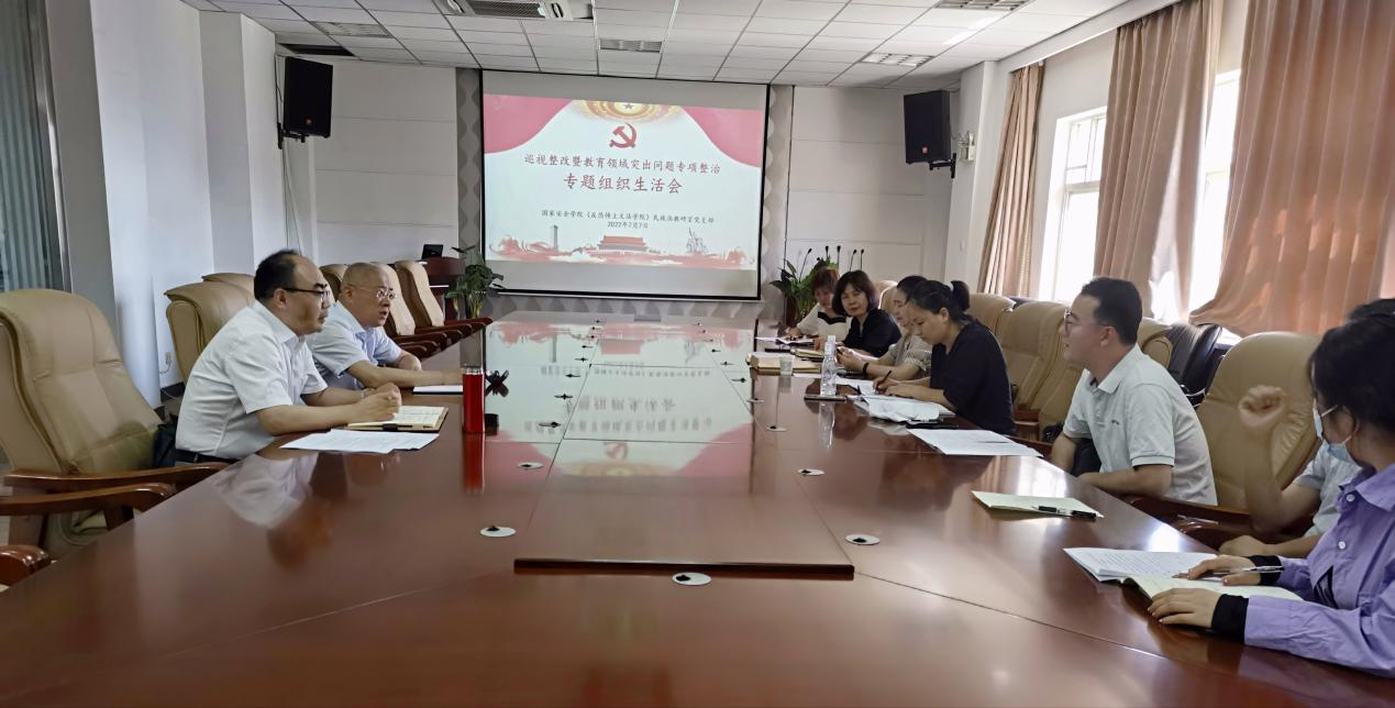 民族法教研室党支部在图书馆四楼会议室召开“巡视整改暨教育领域突出问题专项整治专题组织生活会,副校长王健作为民族法教研室党支部联系校领导到会指导,党支部全体党员参加了此次专题会。会议由党支部书记王英主持。