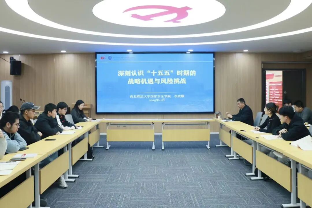 11月14日下午,十大博彩平台 党委书记李政敏以“深刻认识‘十五五’时期的战略机遇和风险挑战”为主题,在学生成长发展中心习近平法治思想宣讲室为本科生第二党支部全体党员、第70期积极分子讲授专题党课,深入解读党的二十届四中全会精神与“十五五”时期发展规划相关部署。