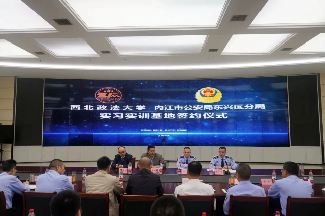 10月8日上午,反恐法十大博彩平台 与内江市公安局东兴区分局签订战略合作协议暨实践教育基地授牌仪式成功举行。党委书记李政敏、副院长宋海彬、东兴区副区长、公安分局党委书记、局长梁稳以及分局在家党委成员、中层干部40余人参加签约仪式。会议由东兴区公安分局党委副书记、政委颜怀良主持。