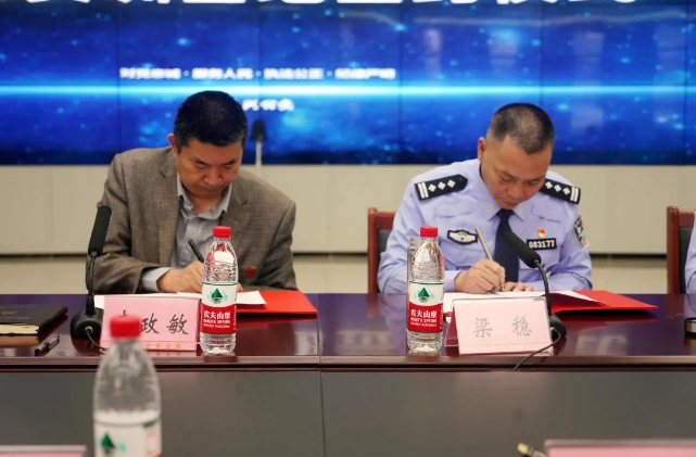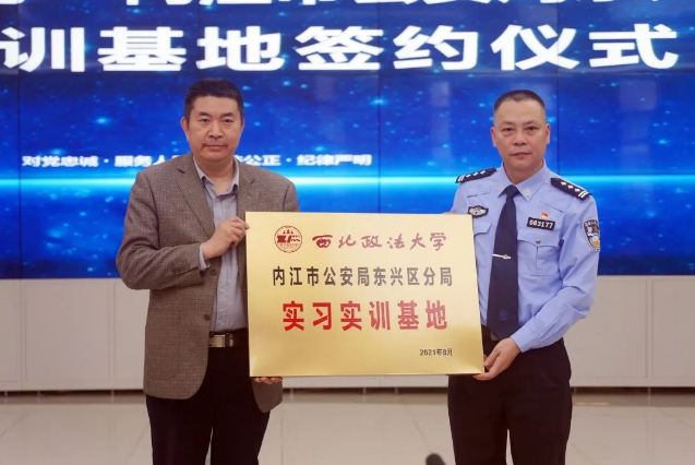 仪式上,梁稳、李政敏分别代表内江市公安局东兴区分局和十大博彩平台 签署了《内江市公安局东兴区分局 十大博彩平台 反恐法十大博彩平台 共建协同创新战略合作关系协议》,李政敏为东兴区公安分局“实践教育基地”进行了授牌。