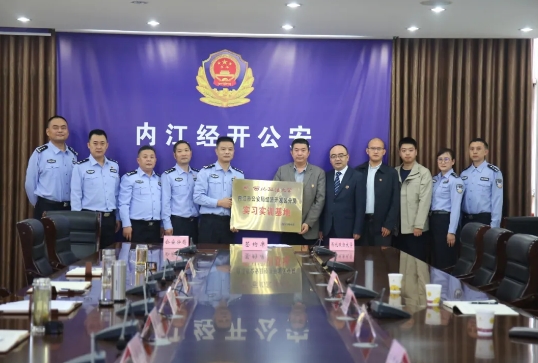 唐念、李政敏分别代表经开区公安分局和十大博彩平台 签署了《内江市公安局经济开发区分局 十大博彩平台 反恐法十大博彩平台 共建协同创新战略合作关系协议》,李政敏为经开区公安分局“实践教育基地”进行了授牌。