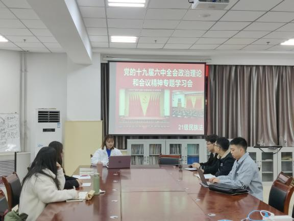 11月8日,2021级2班团支部开展了以“学习党的十九届六中全会精神”为主题的团日活动。团支书高小璇以宣讲形式向同学们解读了党的十九届六中全会精神内涵。在感悟交流分享会中,同学们纷纷表示,作为一名新时代大学生,要在今后的学习工作中严格要求自己,依法履职尽责,践行法律使命,守护公平正义,让青春在扎根基层一线中绽放最美的芳华。