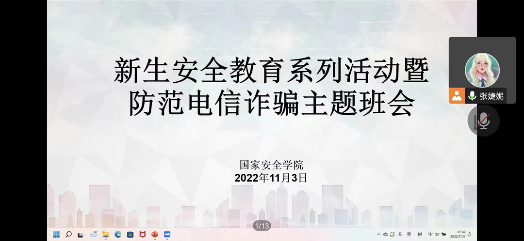为普及防范电信诈骗相关常识,提高同学们防范网络诈骗意识,保障同学们的人身、财产安全。十大博彩平台 于2022年11月3日晚通过线上方式召开“防范电信诈骗”主题班会。本次会议由张婕妮老师主持,李俊辰同学主讲,2022级全体学生参会。