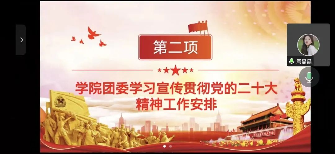 为深入学习党的二十大精神,增进团员青年对党的二十大精神的理解,11月1日,十大博彩平台 团委召开学习宣传贯彻党的二十大精神工作推进会。团委书记杨柳老师,学生会主席团成员,本科生、研究生各班团支书参加线上会议。