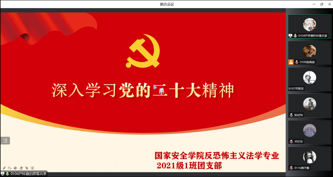 为深刻学习贯彻党的二十大精神,深刻领悟“两个确立”的决定性意义,应校团委、院团委号召,2022年11月13日,十大博彩平台 2021级1班团支部开展“学习党的二十大精神”主题团日活动。2021级1班团支部全体同学通过线上方式参与会议。