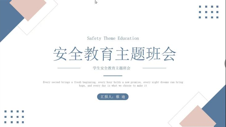 会议主要从四个方面对安全教育的内容进行阐述。蔡迪同学强调了校内生活安全、课余运动安全、交通安全、饮食安全。随着冬季来临,气候变化,一些安全隐患亟待同学们防范:宿舍科学用电,暖气供应后合理置放易燃物品;课余运动做好热身活动,把握运动时间;上下课途中注意人群拥挤,夜间灯光昏暗小心出行;注重食品安全性与饮食规律性。最后蔡迪同学在会议中强调,不论在校学习生活还是外出活动,人身安全绝非小事。安全来自长期警惕,事故源于瞬间麻痹。每位同学都应该将安全细节谨记心中,落于实践。
