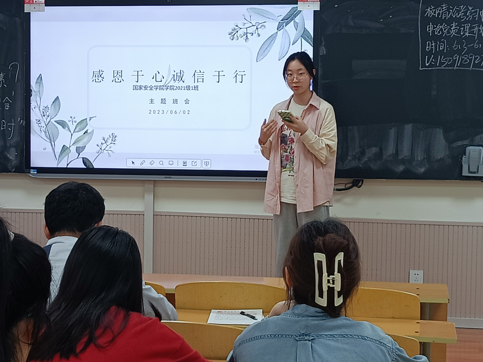 此次班会深刻响应了将资助工作与育人活动紧密结合起来的号召,叶奕玉同学根据自身实例,谈了自己对感恩与诚信的理解,并与同学们探讨应该如何树立感恩社会与诚信自我的价值观。引导同学们“言必信,行必果”,在日常生活中诚信待人。希望同学们常怀感恩之心,感恩父母,感恩老师,感恩社会,在未来的学习生活中增强责任担当意识,树立诚实守信观念,践行自己的诺言。