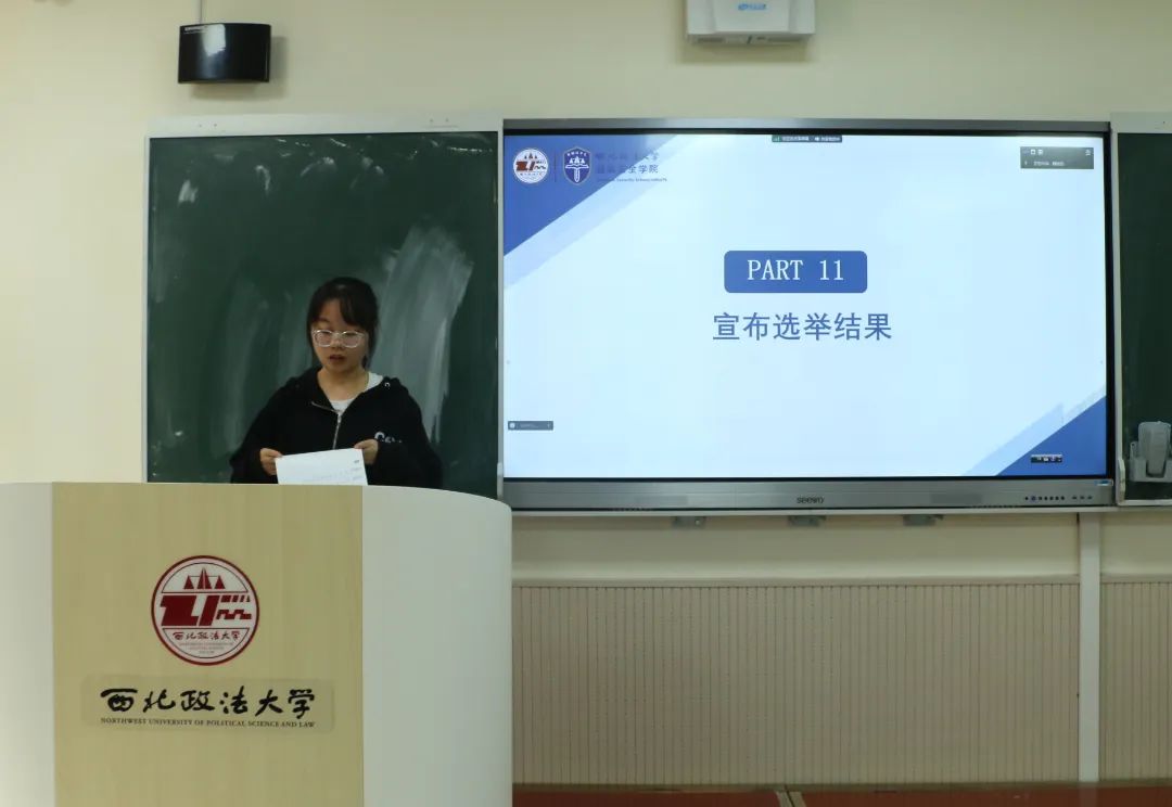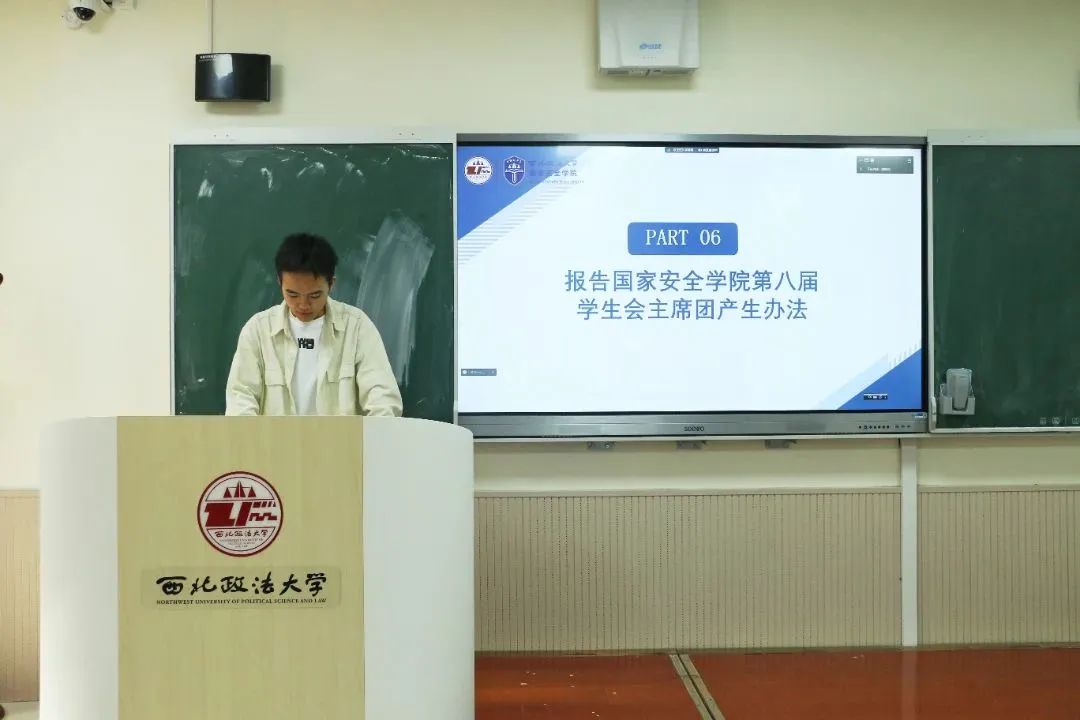 郑景同同学宣读十大博彩平台 第八届学生会主席团产生办法。