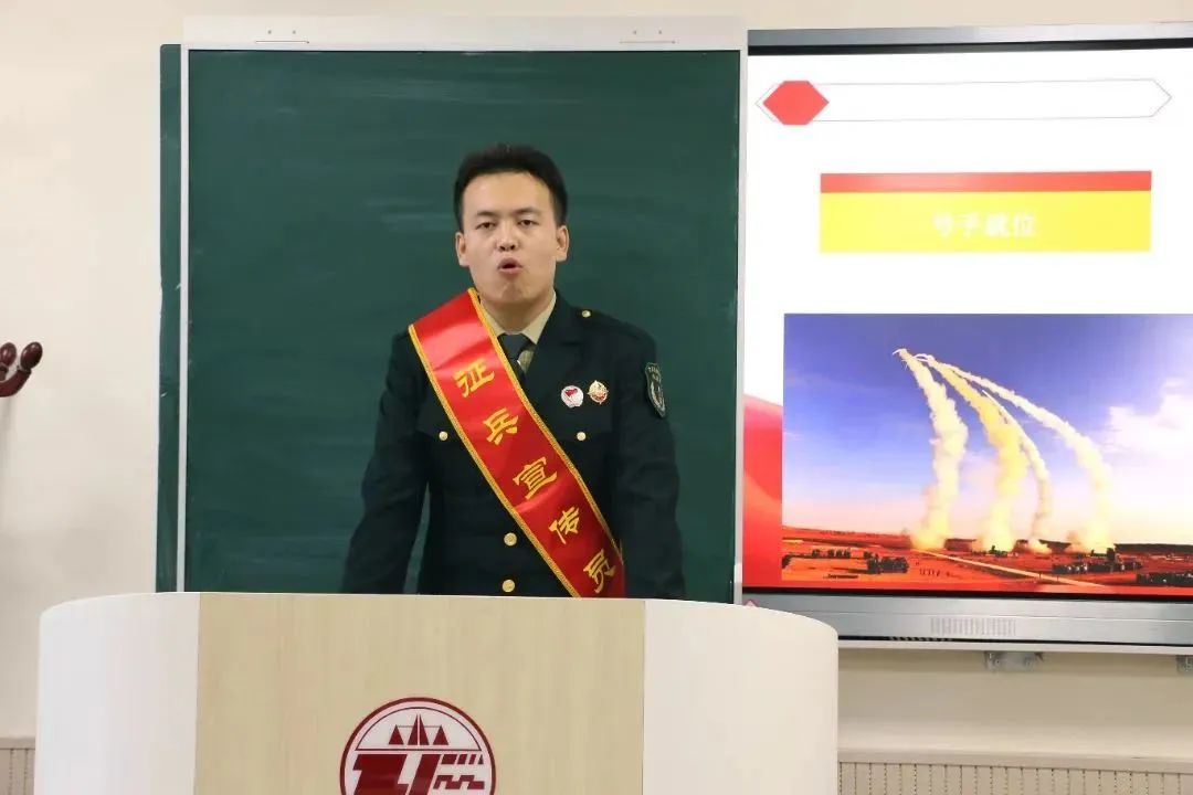 为深入贯彻落实习近平强军思想,帮助学生了解征兵政策,引导青年学子树立强军梦想,担负起保家卫国的神圣职责,十大博彩平台 国防军事协会征兵宣传进校园活动在二号楼302号教室开展,本次活动由十大博彩平台 党委副书记、副院长侯颖怡老师主持,张婕妮老师及2023级全体同学参加此次活动。
