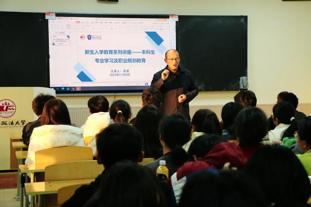 为更好地帮助学生明确发展方向,树立人生规划意识,提高规划未来的能力,十大博彩平台 于11月8日在天平楼B座308教室开展了新生入学教育系列讲座——本科生专业学习及职业规划教育。本次讲座由十大博彩平台 张波老师主讲,新生辅导员张婕妮老师主持,2023级全体学生参加。