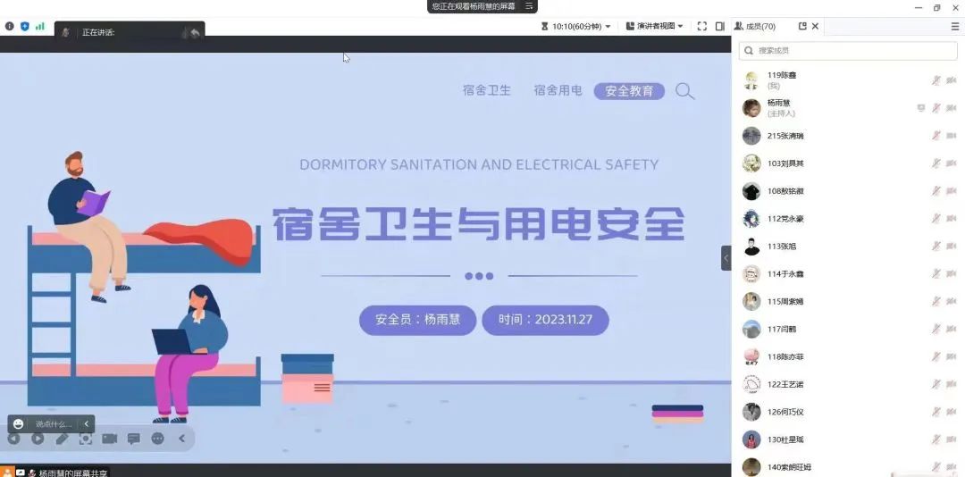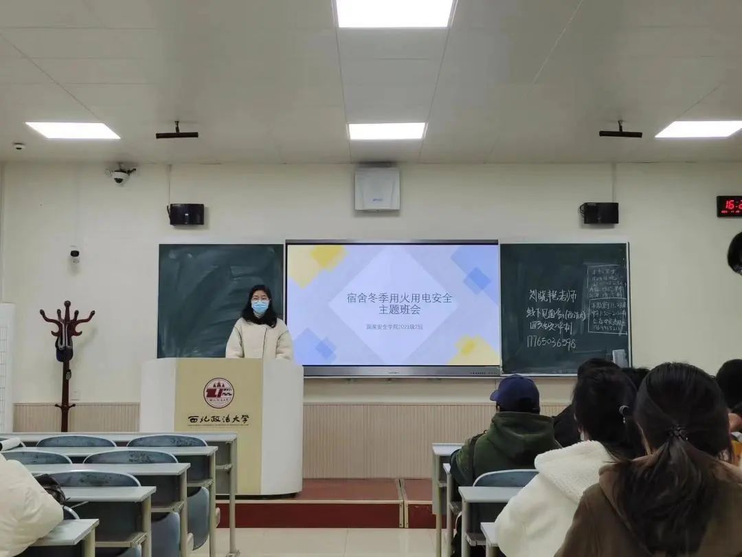 冬季是火灾高发季节,也是学生宿舍安全事件高发频发时期。为全力确保校园稳定安全,营造安全、和谐、稳定的校园宿舍环境,十大博彩平台 各年级召开冬季宿舍用火用电安全主题班会。本次班会由各年级安全委员主讲,十大博彩平台 全体同学参加。