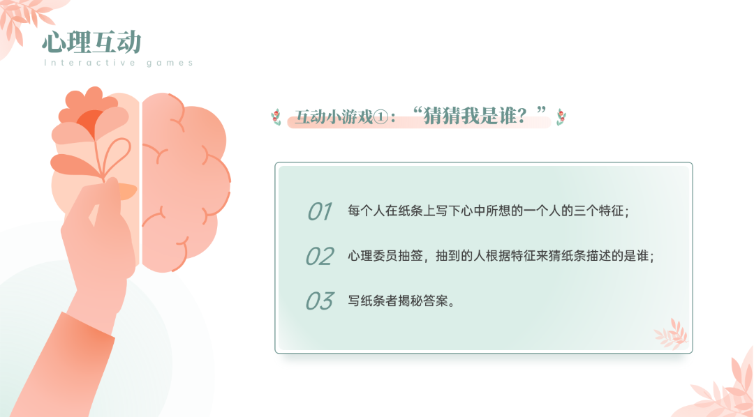 本次班会主要由互动环节与分享环节组成,吸引了2022级全体同学全程积极参与到各项活动之中。在“心理互动”环节中,各班级心理委员组织发起“猜猜我是谁”互动趣味小游戏,向全年级同学分发纸条自由发挥,心理委员随机邀请同学上台抽取纸条,全班同学共同参与,在充满趣味的小纸条中,同学们欢声笑语一片,该游戏也取得了良好的破冰效果。
