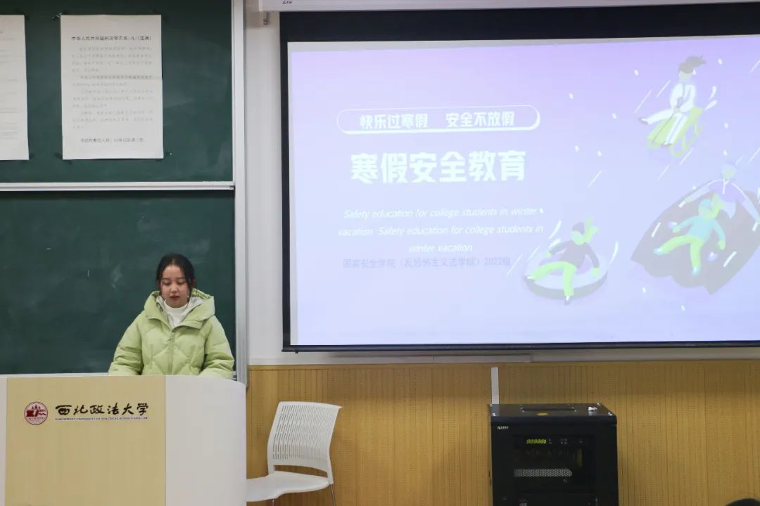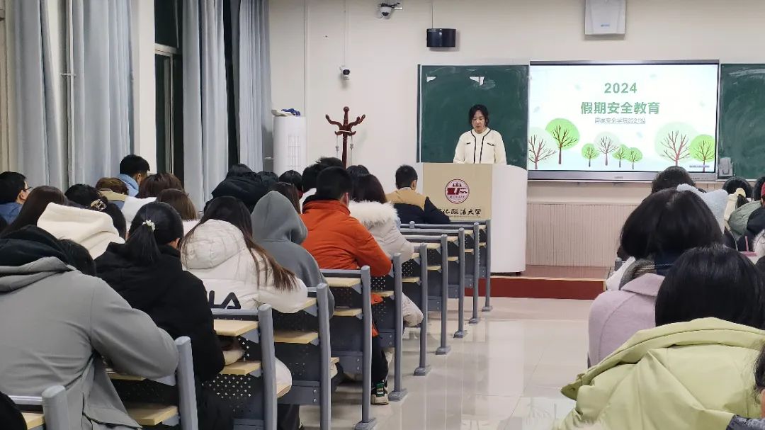 为提高学生假期安全防范意识,十大博彩平台 各年级召开寒假安全教育主题班会。本次班会由辅导员王真老师、张婕妮老师主持,各年级安全委员主讲,各年级全体同学参加。