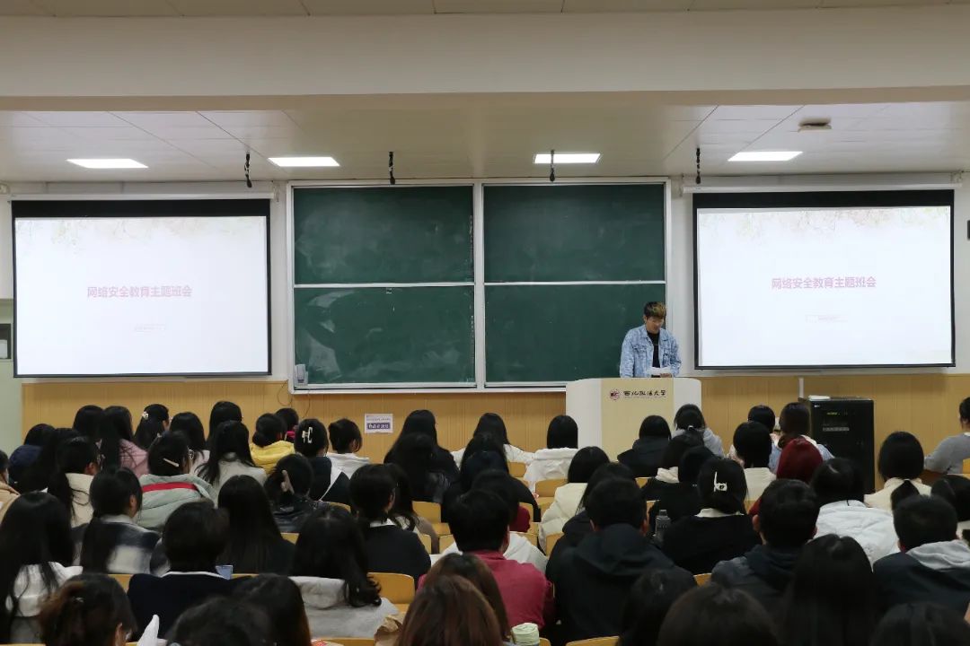 为提高学生网络安全意识,营造和谐文明的网络环境,十大博彩平台 于3月3日晚召开“网络安全教育”主题班会,本次班会由张云哲同学主持,2022级、2023级全体同学参加。