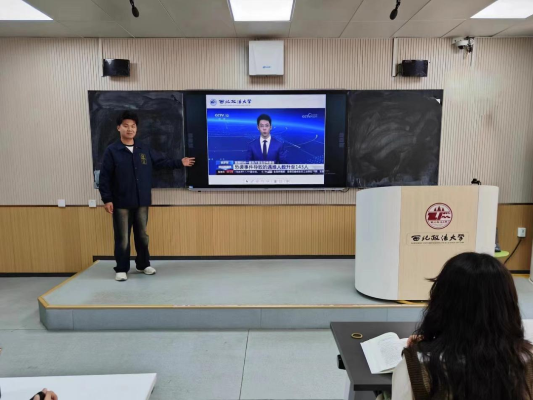 为拓展大学生眼界,关注时事新闻与世界局势,张盛源同学带领大家观看时事新闻,让同学们及时了解到时事热点,结合专业知识,进行分析与思考。希望同学们在学习的同时关注社会热点和时事新闻,了解国内外形势,增强自身的判断力和思考能力。