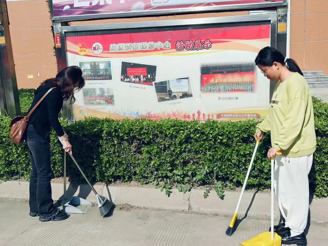 在打扫过程中,同学们认真清扫垃圾,分组分区进行打扫,整个清扫过程井然有序。经过同学们的共同努力,卫生区域变得焕然一新。