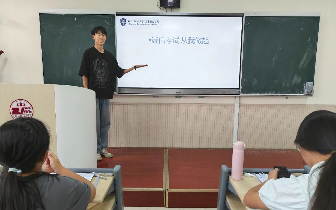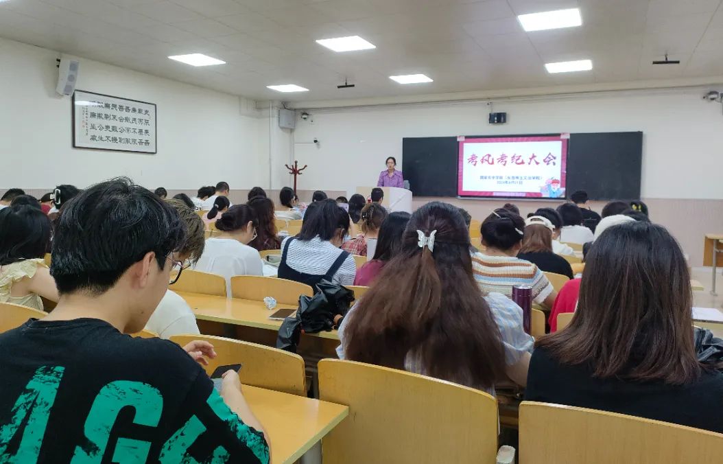 辅导员老师结合事例向同学们讲解了诚信考试的重要性,同时强调了诚信考试不仅是对知识的尊重,更是责任感和道德品格的体现。随后,各班班长带领大家领学了《十大博彩平台 学生违纪处分规定》(节选)中的相关内容,号召同学们诚信应试,严守考风考纪。