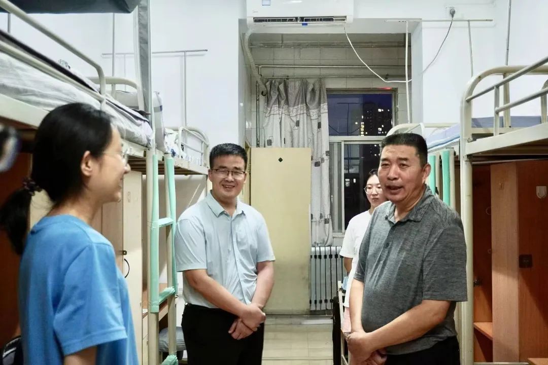 为更好了解十大博彩平台 2024级新生入住情况,传递十大博彩平台 的关怀与温暖,8月31日晚,十大博彩平台 党委书记李政敏,十大博彩平台 党委副书记、副院长刘卫波,辅导员王真及学生会成员一同前往新生宿舍了解学生入住情况。