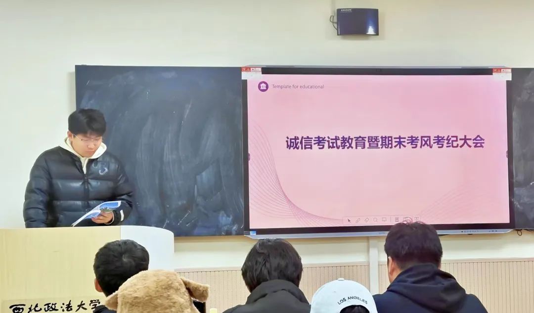 王真老师和张婕妮老师讲解了关于期末考试的各方面规章制度,着重强调了诚信考试的重要性,引导同学们树立正确的考试观念。提醒同学们务必努力学习、诚信考试,自觉抵制作弊行为,共同维护一个公平公正的考试环境。