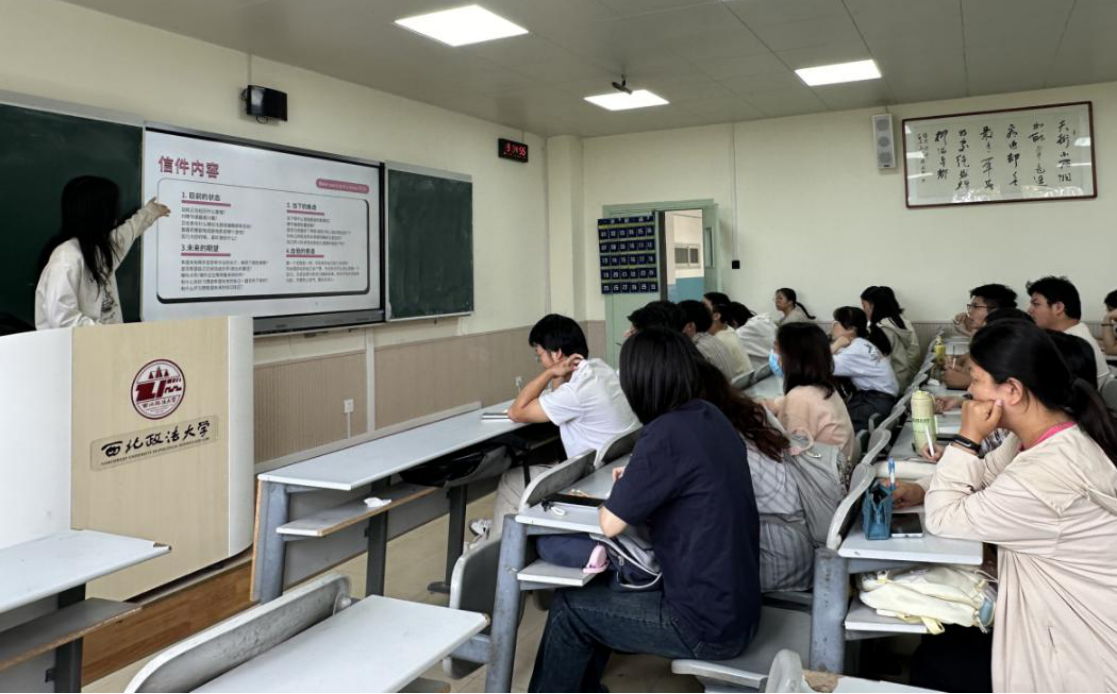 会上,师文同学系统讲解了“叙事疗法”与“自我同一性理论”,阐明书写对心理调适的作用:“将抽象焦虑转化为具体文字,能有效降低情绪压力。”随后播放《致十年后的我》心理微课视频,结合埃里克森人格发展理论,解析青年期目标建构的重要性。