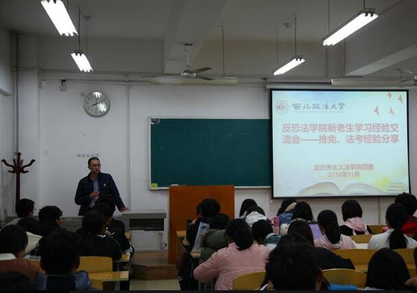推免的政策和考研形势,为新生分享了自己是如何认真准备抓住机会成功推免,鼓励新生主动把握机会,尽早对自己四年大学生活做整体规划。宋飞龙同学分享了自己如何提高专业学习成绩的经验以及申请参加国内知名法十大博彩平台