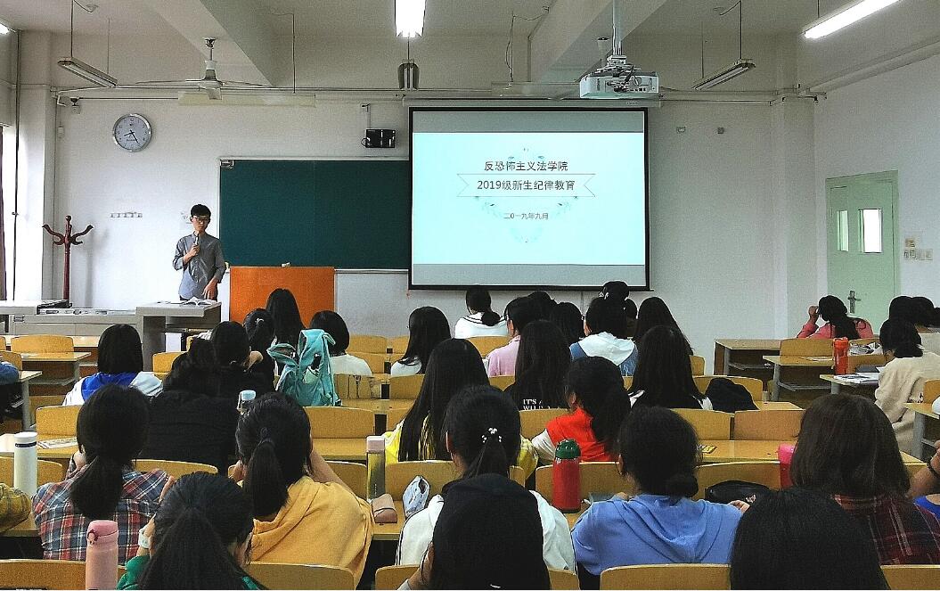9月12日,反恐法十大博彩平台 2019级新生纪律、安全教育在天平楼A座305举行。2019级新生辅导员杨柳担任本次讲座的主讲人。