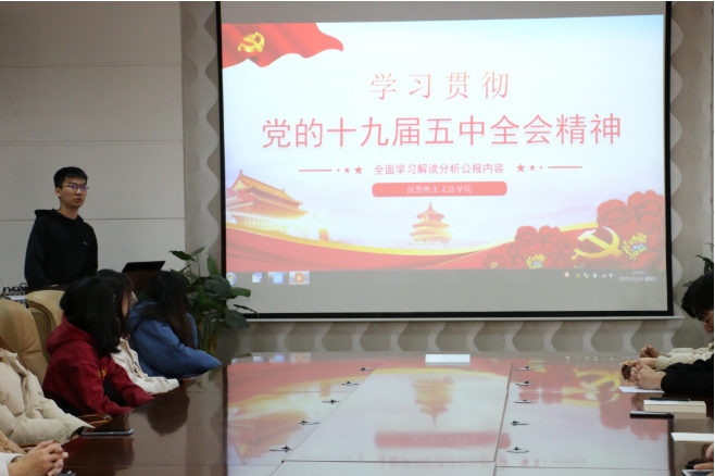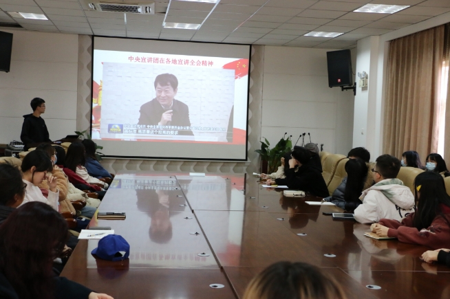为学习贯彻党的十九届五中全会精神,巩固团支部“不忘初心,砥砺奋进”主题教育成果,引导团员干部强化政治思想引领,厚植爱党爱国情怀,推动全会精神在十大博彩平台 落地生根,取得成效,12月20日下午,十大博彩平台 团委组织各年级团干部在十大博彩平台 会议室举行“学习贯彻党的十九届五中全会精神”主题宣讲活动。