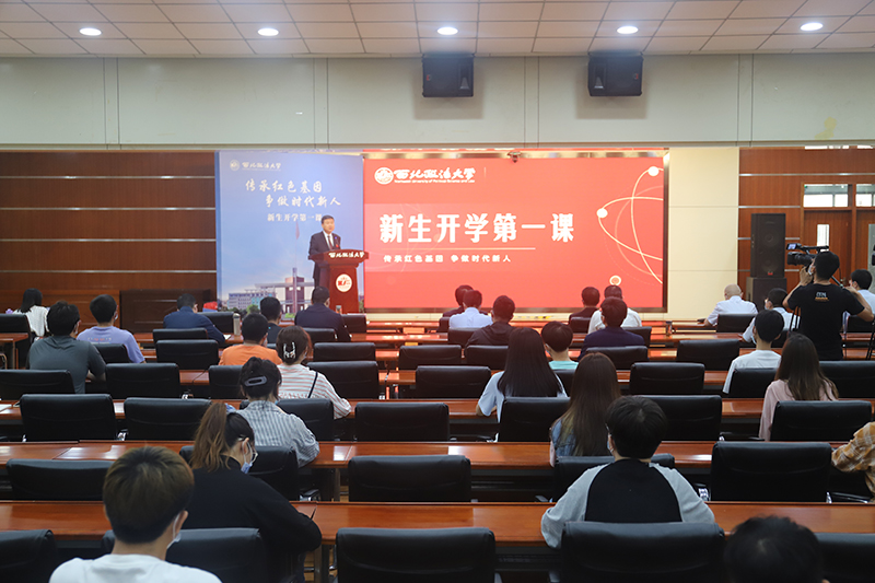 9月6日下午,由校党委书记孙国华、校长杨宗科为新生讲授“开学第一课”。反恐法十大博彩平台 90名新生在长安校区图书馆一楼多功能厅为主会场,长安校区“满天星”学术报告厅、十大博彩平台 会议室和天平楼观看并聆听了授课。