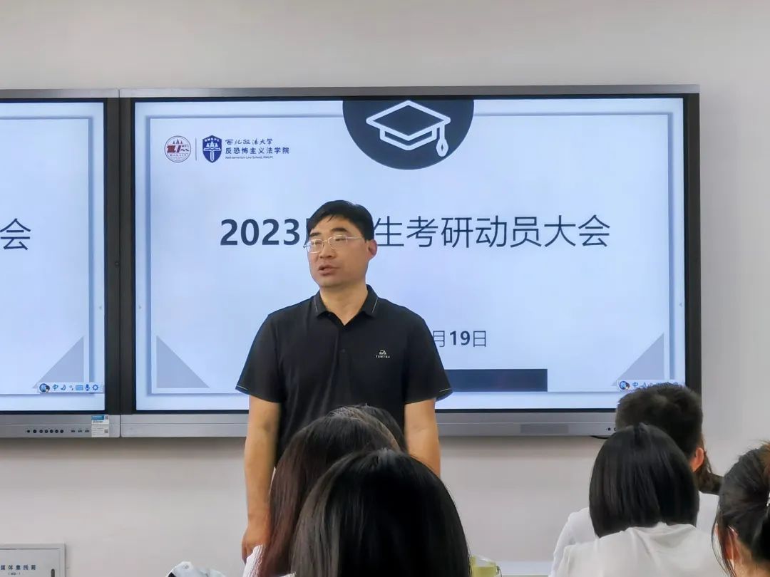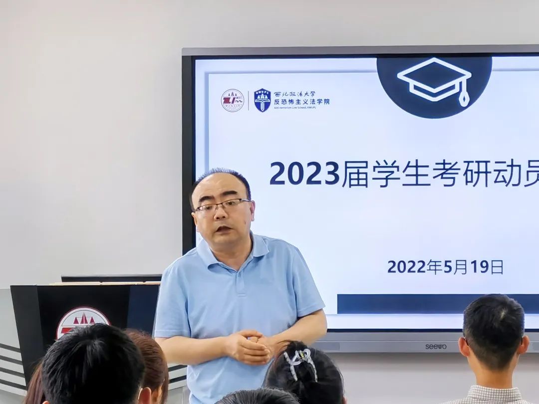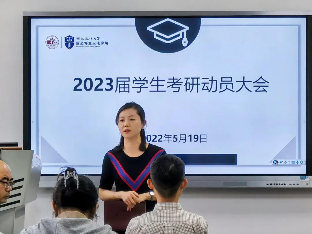 为帮助同学们明确考研方向,认清考研形势,树立考研信心,引导学生合理规划学习生活,积极备战考研,5月19日下午,反恐法十大博彩平台 于诚意楼306教室召开2023届学生考研动员大会。副院长宋海彬老师、副院长王东明老师、党委副书记侯颖怡老师作考研动员讲话,2019级、2020级全体同学通过线上线下参加。活动由团委书记杨柳老师主持。