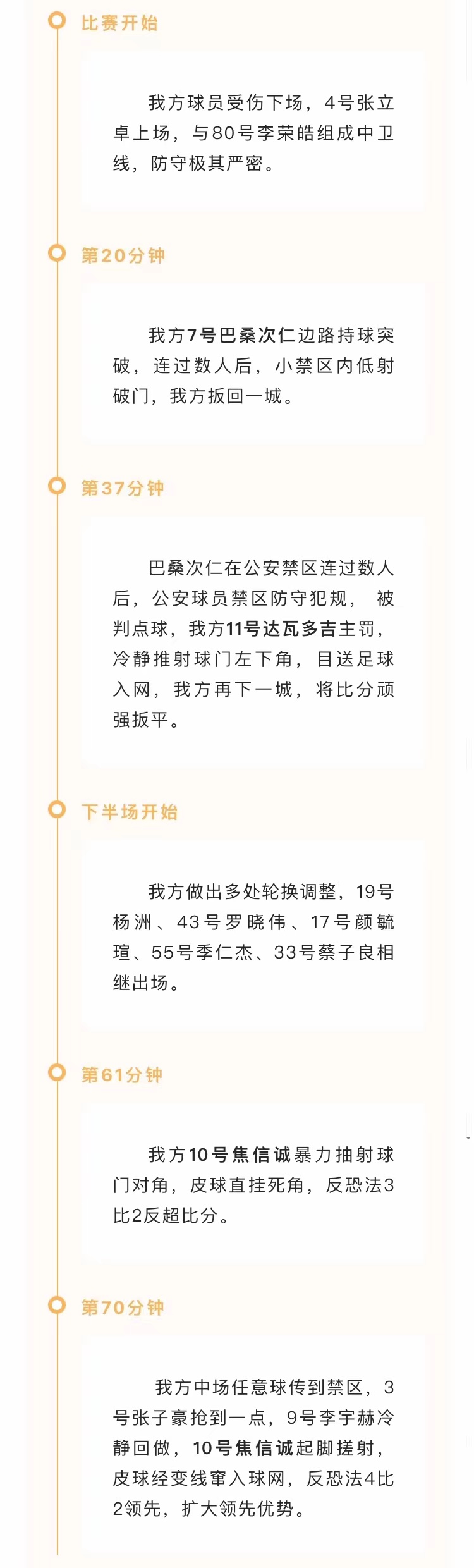 之后比赛我方球员冷静应对,积极防守,众志成城,将胜利保持到终场结束。