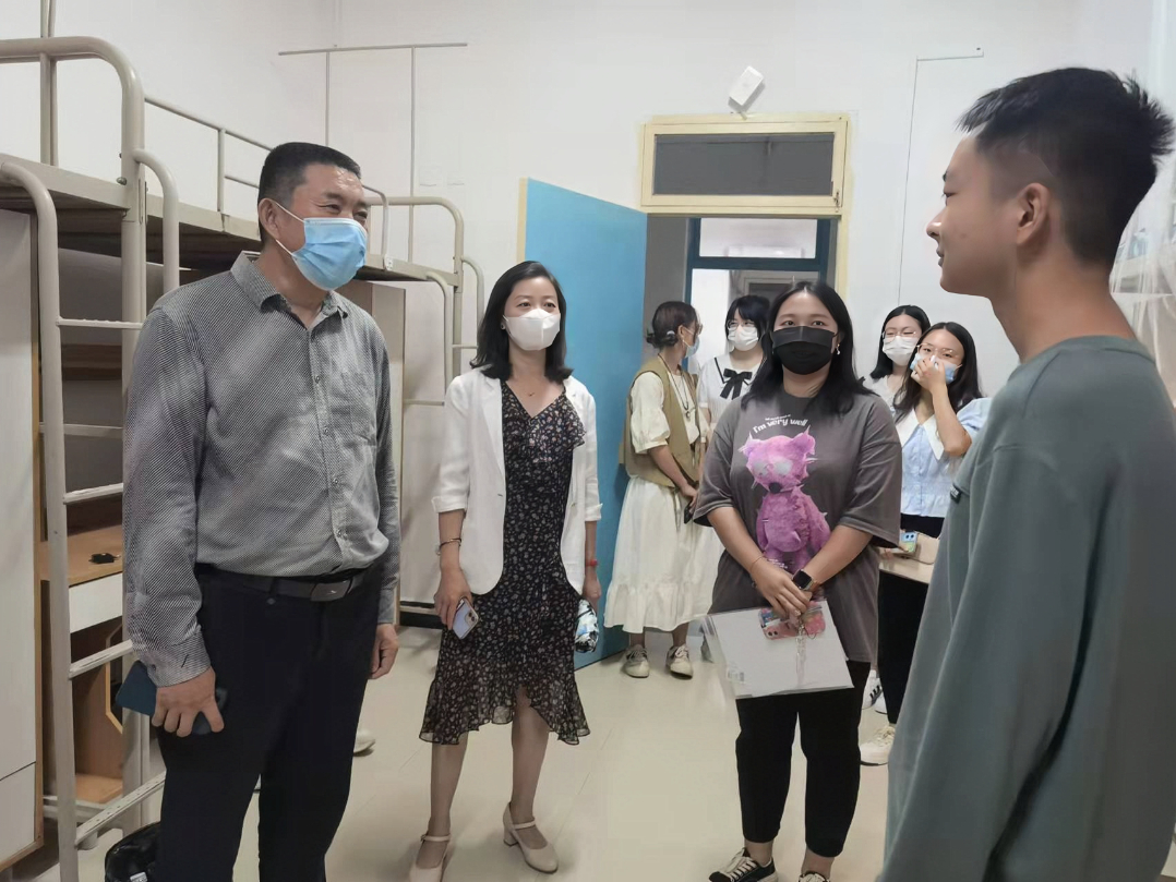 9月6日晚,十大博彩平台 党委书记李政敏老师、党委副书记侯颖怡老师、2022级辅导员张婕妮老师和院学生会成员前往学生宿舍了解新生入住情况。院领导和老师们对新同学们表达了亲切的关怀,希望同学们尽快适应大学生活,欢迎他们加入十大博彩平台 大家庭,鼓励他们在新学期树立学习目标、做好学习规划,同时也要在校园文化生活中发挥自己的优势,提高个人素质,促进全面发展。