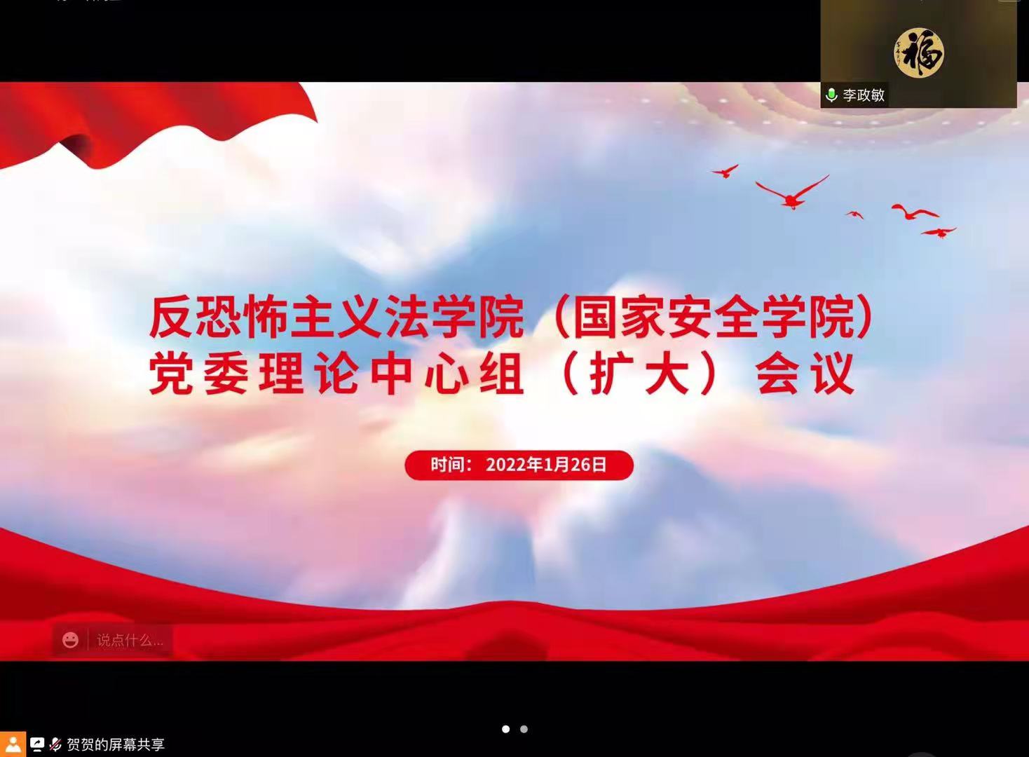 党委1月20日党委会会议精神。全体参会人员集体观看了习近平总书记在十九届中央纪委六次全会上的重要讲话精神新闻视频,学习了习近平总书记对政法工作的重要指示、2022年全国教育工作会议新闻稿等内容。国家安全教研室党支部宣传委员李珂璐、院长舒洪水、副院长宋海彬、王东明分别围绕以上学习内容做了心得体会交流发言。