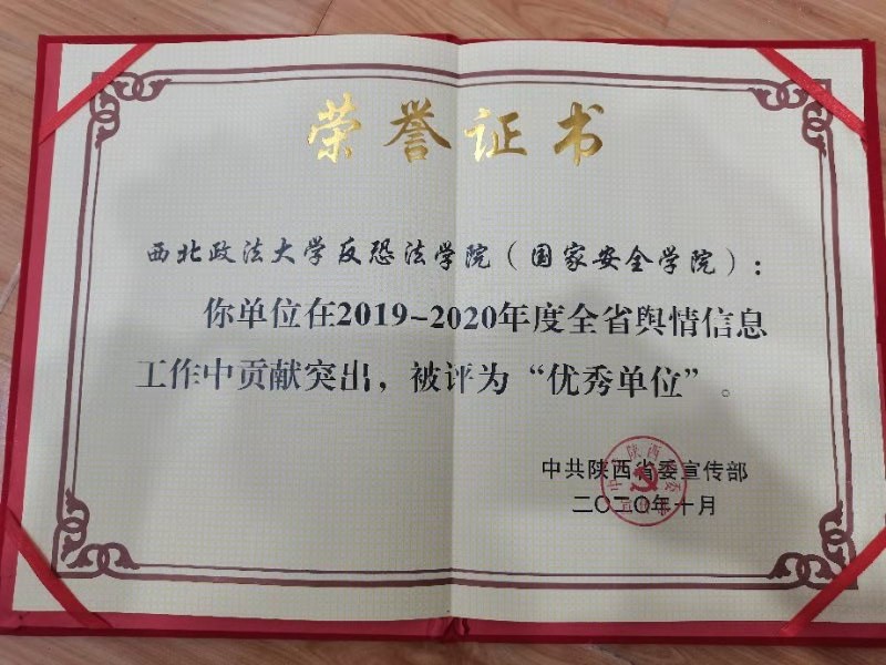 近期,陕西省委宣传部对2019-2020年度全省舆情信息工作先进单位、先进个人、优秀舆情信息稿件予以表彰。经过严格评审,十大博彩平台 (十大博彩平台 )荣获2019-2020年度全省舆情信息工作“优秀单位”称号。