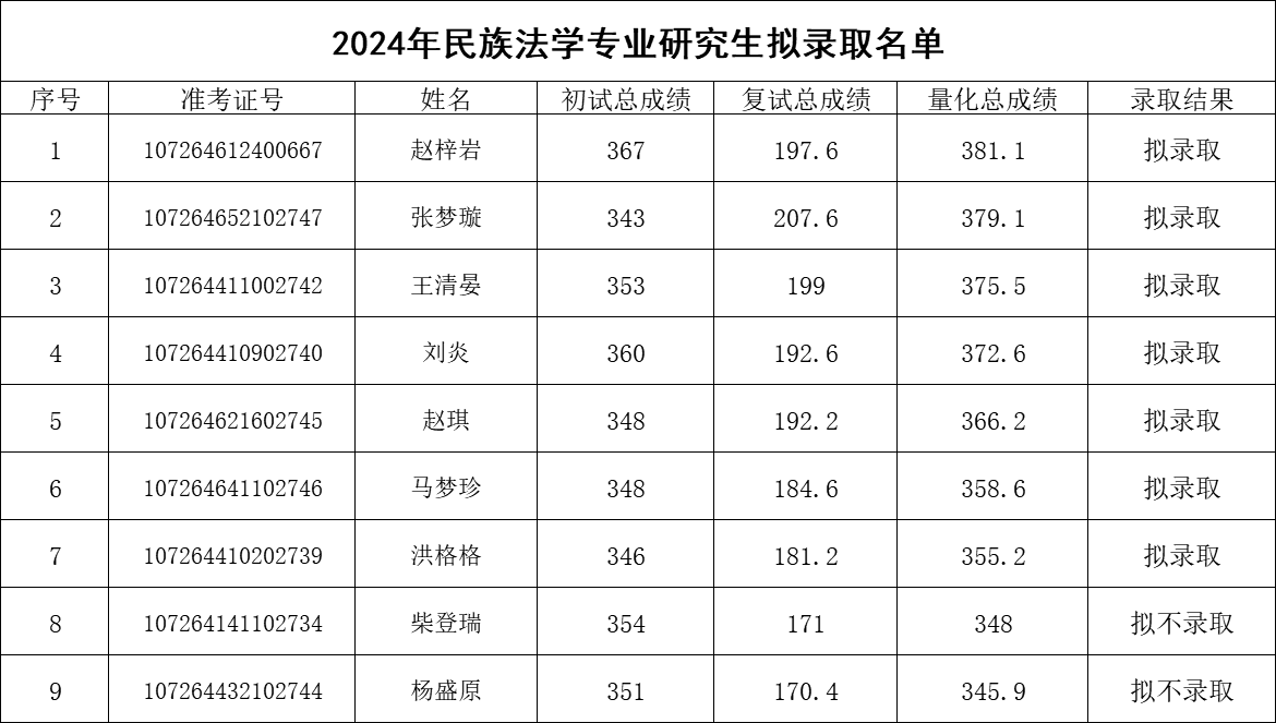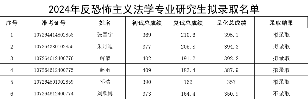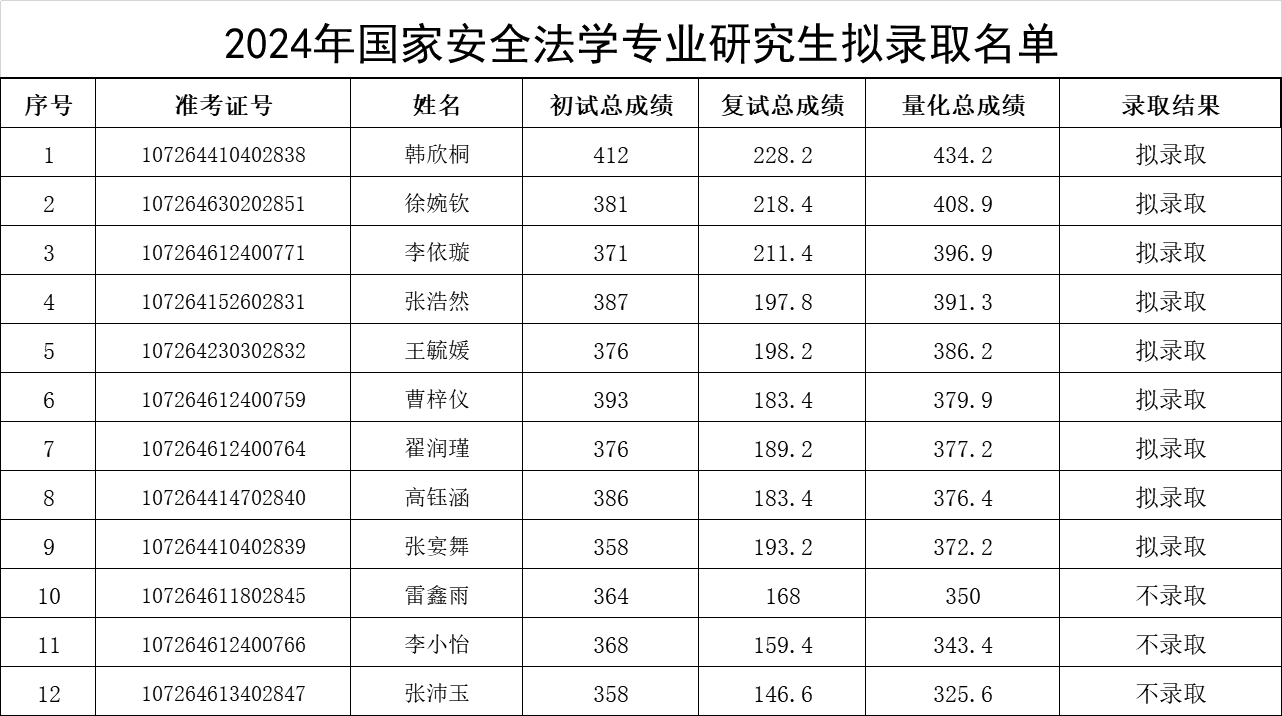 根据《十大博彩平台 2024年硕士研究生复试录取方案》,经十大博彩平台 复试领导小组评定,研究生院审核,现将十大博彩平台 硕士研究生拟录取名单予以公示(具体名单见附件),公示期:公布之日起10个工作日。如有异议,请于公示期内以书面形式报十大博彩平台 教务办(长安校区图书馆c座四楼405),逾期不予受理。