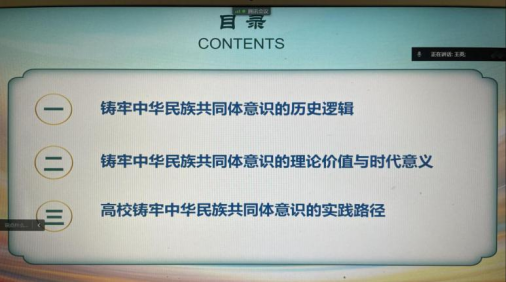 王英副教授紧密结合第七届民族团结进步宣传月活动主题,分别从铸牢中华民族共同体意识的历史逻辑、铸牢中华民族共同体意识的理论价值与时代意义和高校铸牢中华民族共同体意识的实践路径三个方面对我国多元一体的民族格局、现行民族政策理论以及高校开展民族团结进步宣传教育的价值和意义作了全面解读。