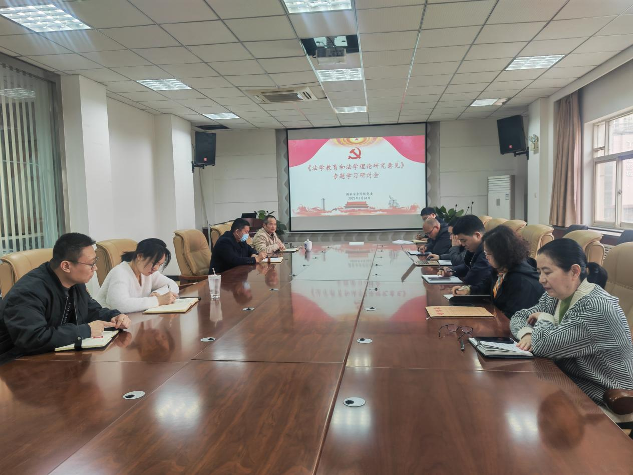 3月24日下午,十大博彩平台 党委召开理论中心组(扩大)会议,专题学习研讨中共中央办公厅、国务院办公厅印发的《关于加强新时代法学教育和法学理论研究意见》(以下简称《意见》)。十大博彩平台 领导班子、院长助理、支部书记参加会议,会议由党委书记李政敏主持。
