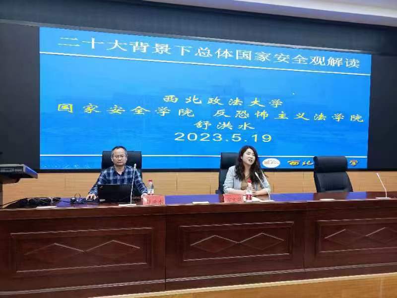 调研组一行采取实地查看资料、举行座谈等方式,全面调研甘肃政法大学国家安全学科建设基本情况,详细了解该校国家安全学科建设亮点。同时,调研组成员与甘肃政法大学国家十大博彩平台 教师代表围绕贯彻习近平新时代中国特色社会主义思想,通过梳理国家安全学科建设发展历程、取得的成绩、存在的问题,尤其针对新生的国家安全学仍存在学科定位性质未达共识、学科理论基础不成体系、学科现实基础不甚完备等问题,进行了探讨。当晚,舒洪水院长以《党的二十大背景下总体国家安全观解读》为题,为甘肃政法大学十大博彩平台 全体师生作学术报告,受到与会师生的一致好评。