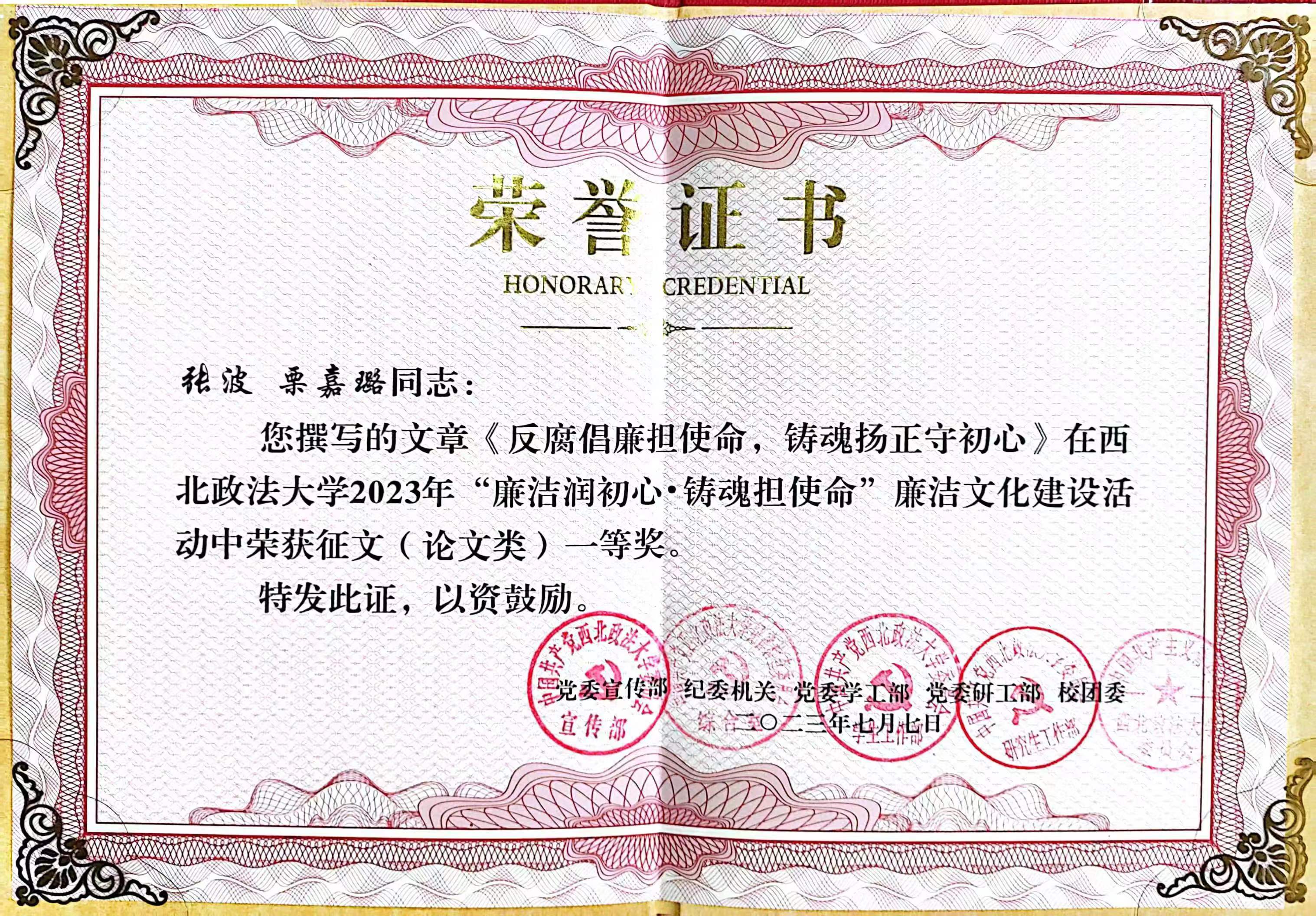 近日,由校党委宣传部、纪委机关、学工部、研工部和校团委面向全校开展2023年“廉洁润初心·铸魂担使命”廉洁文化建设活动。十大博彩平台 教师张波撰写的《反腐倡廉担使命,铸魂扬正守初心》荣获征文(论文类)一等奖。