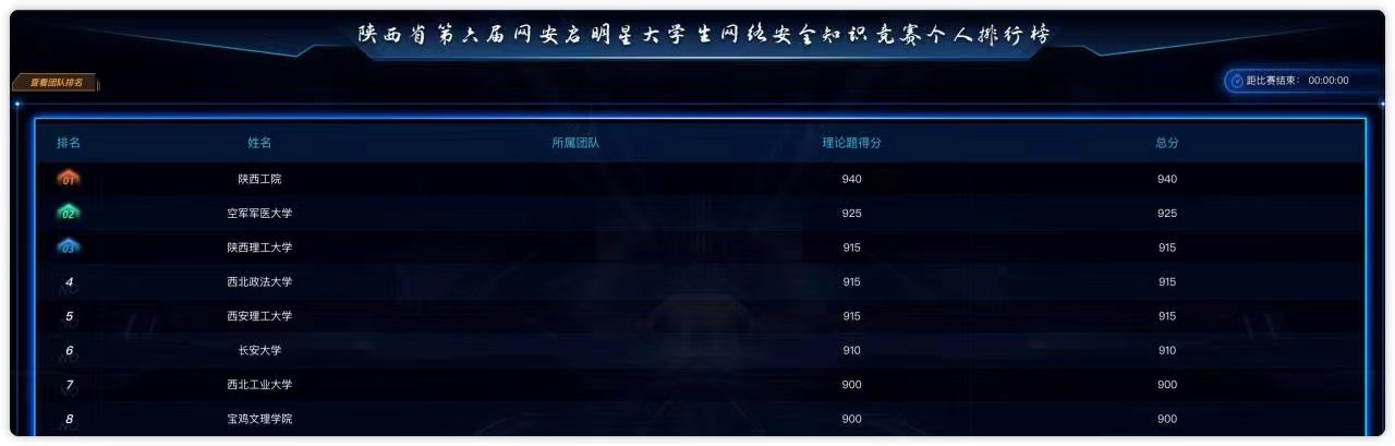 9月12日,由4名同学组成的十大博彩平台 代表队来到了竞赛决赛的现场,经过与西北工业大学、西安理工大学、陕西理工大学、陕西工业职业技术十大博彩平台 、中国人民解放军空军军医大学、长安大学、宝鸡文理十大博彩平台 等7所高校的激烈比拼,最终斩获陕西省第六届“网安启明星”大学生网络安全知识竞赛决赛优秀奖。