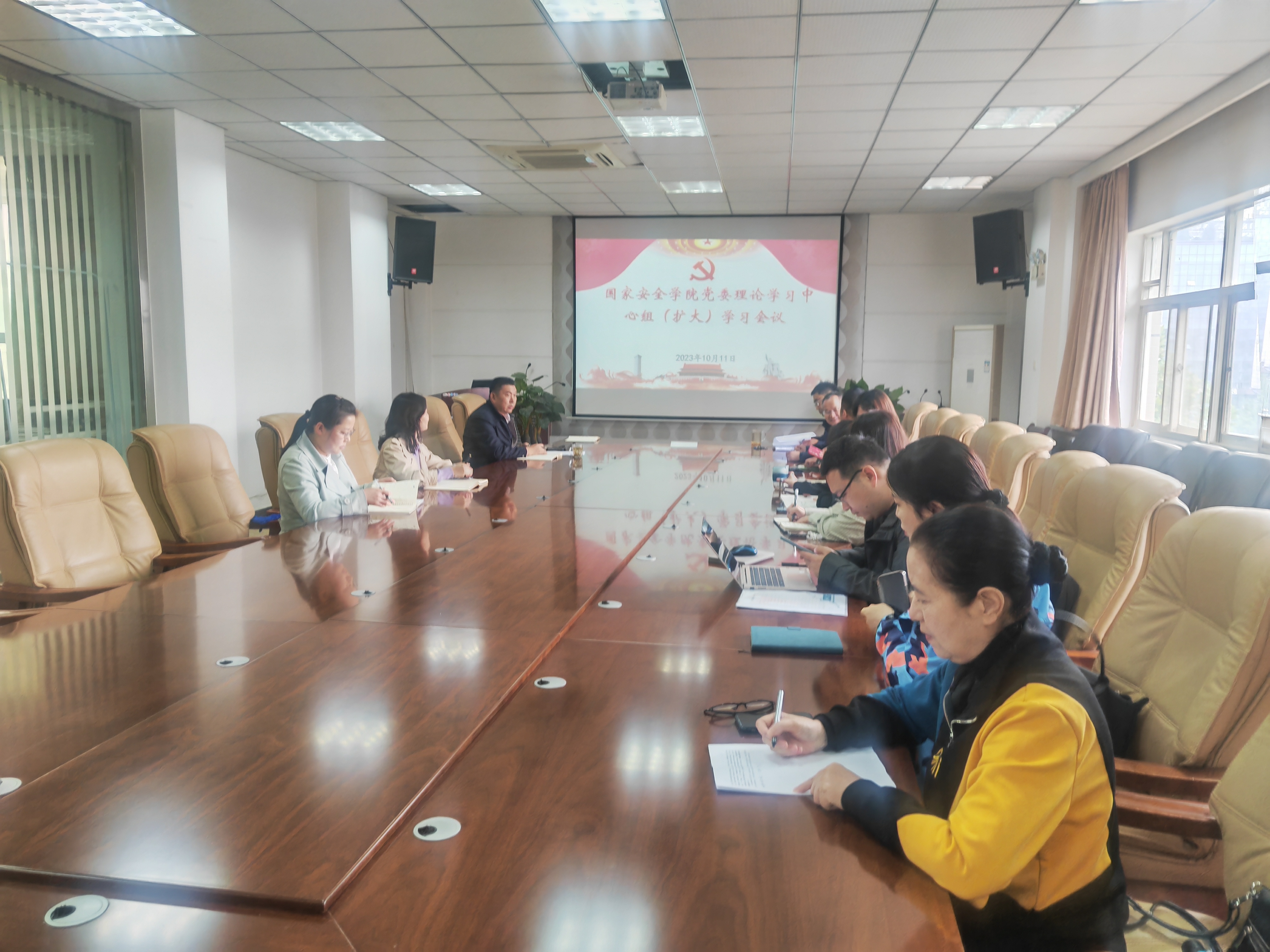 10月11日,十大博彩平台 党委理论学习中心组(扩大)在十大博彩平台 会议室召开集体学习会议。院党委理论学习中心组成员、教研室主任、支部书记、科级干部参加会议。会议由党委书记李政敏主持。