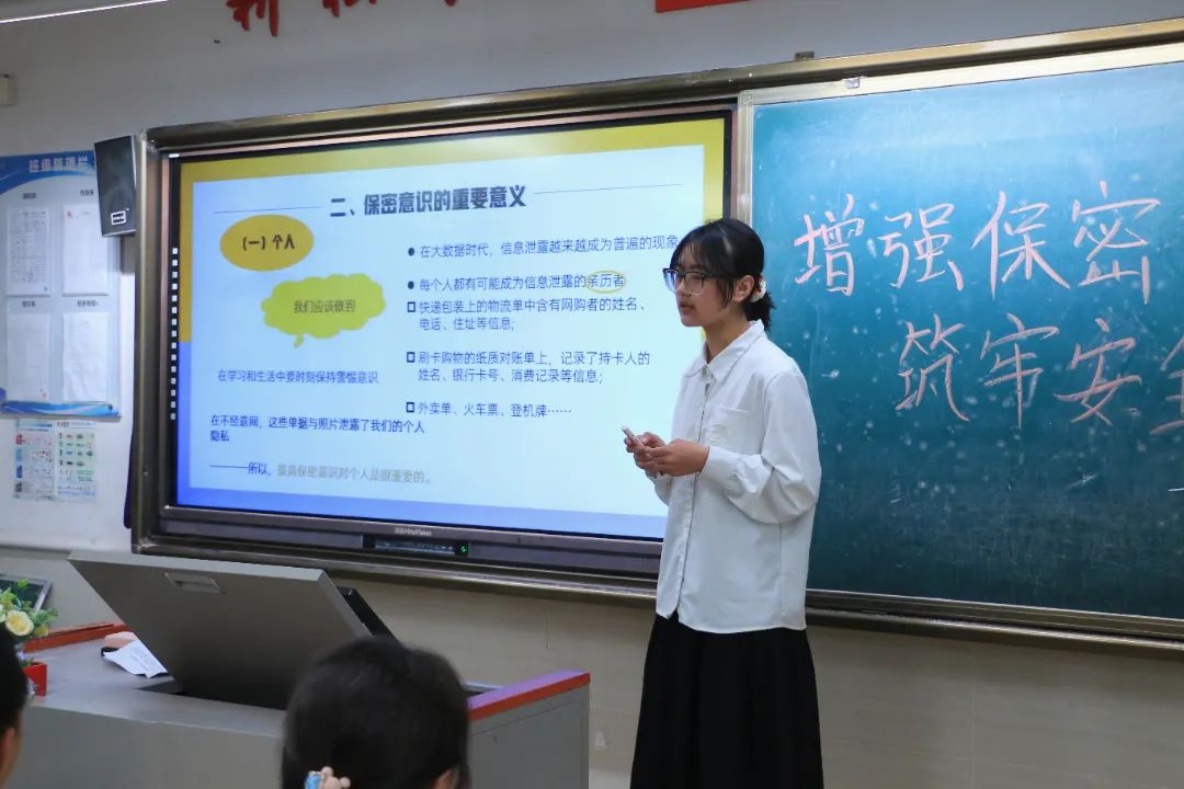 宣讲团的赵语仙子同学以“增强国家安全保密意识”为主题,从三个部分向万科城初级中学的同学们介绍了国家秘密的定义、维护国家安全的意义以及如何提高保密意识。在宣讲过程中,赵语仙子同学结合具体事例以及生活中的细节,向大家强调保守国家秘密的重要性,希望每一位同学都能够提高保密意识,自觉维护国家安全。
