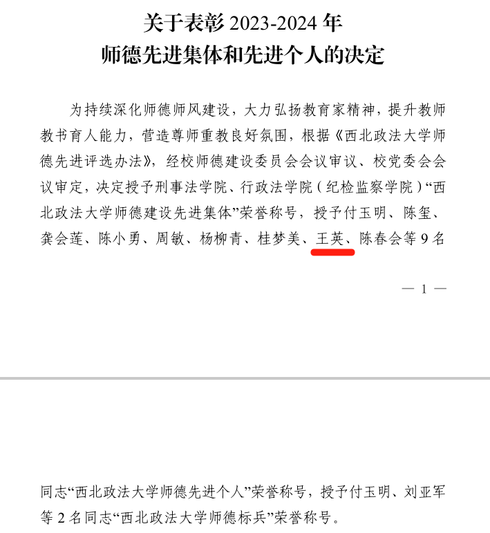 王英副教授荣获“十大博彩平台 师德先进个人”称号,舒洪水教授、彭瑞花教授分别荣获陕西省哲学社会科学优秀成果奖。