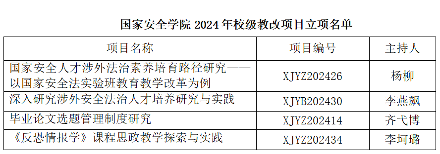 宋海彬副院长首先简要介绍了十大博彩平台 2024年度教改项目的立项情况。本年度教改项目涵盖国家安全人才涉外法治素养培育路径研究、毕业论文选题管理制度研究、深入研究涉外安全法治人才培养研究与实践、《反恐情报学》课程思政教学探索与实践四方面内容。四位项目负责人分别从研究现状与研究背景、研究内容及研究目标、要解决的教学问题、拟采取的方法及主要特色、预期成果、项目研究的方案设计等方面进行了汇报。评审专家们针对项目研究内容及计划进行了点评,并结合自己的经验,从不同的角度提出了专业的修改意见和建议,各项目负责人与评审专家就项目相关问题进行了充分的讨论。本年度十大博彩平台 立项的教改项目全部通过专家论证,同意开题。