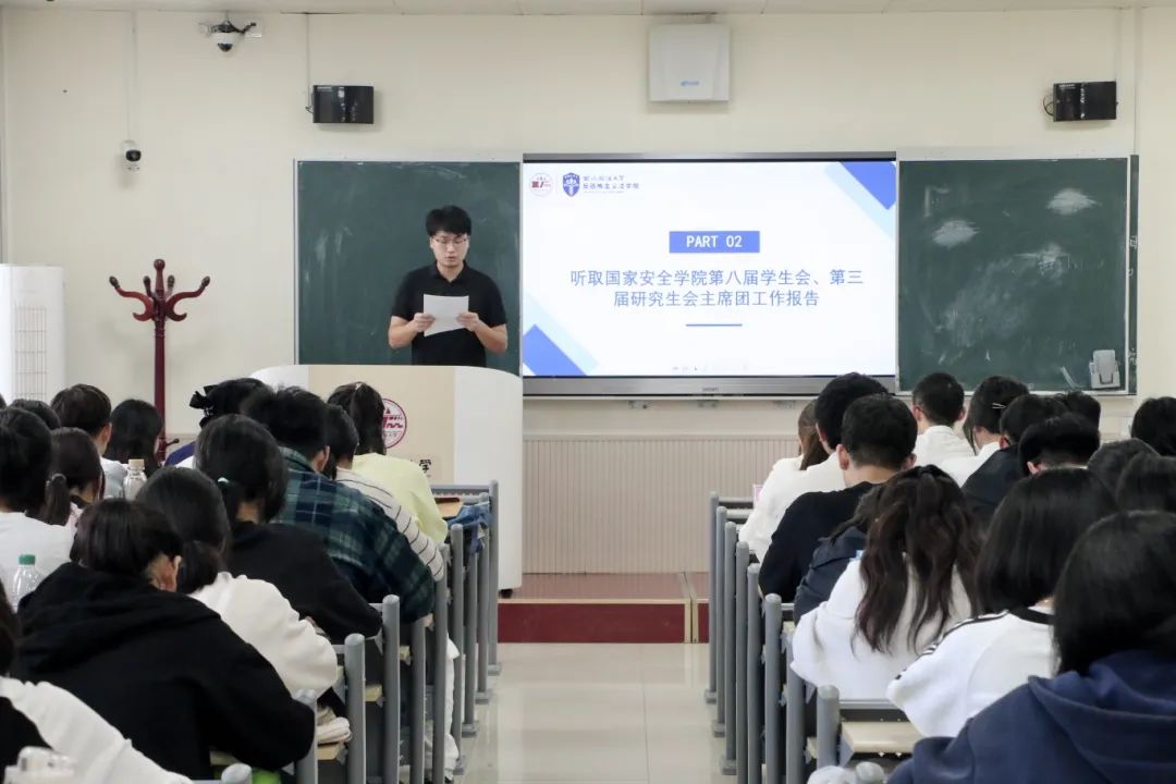 第八届学生会主席团成员李荣皓进行工作汇报。他结合学生会组织建设、思想引领、品牌活动等方面对十大博彩平台 学生会过去一年的工作进行分析总结、查找不足,并对院学生会下一阶段工作提出建议。