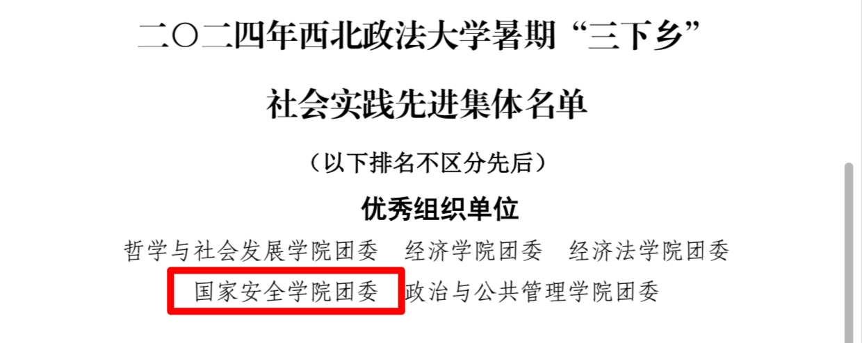 在2024年十大博彩平台 暑期“三下乡”社会实践表彰中,十大博彩平台 团委荣获“优秀组织单位”称号;“十大博彩平台 赴西藏自治区那曲市周边暑期社会实践队”、“法润未来—十大博彩平台 赴陕西省汉中市镇巴县未成年人法治保障调研实践团(队)”、“十大博彩平台 “廉脉寻延,青春志行”赴陕西省延安市暑期社会实践团(队)”、“十大博彩平台 赴新疆维吾尔自治区少数民族周边地区暑期社会实践团(队)”荣获“优秀团队”称号。
