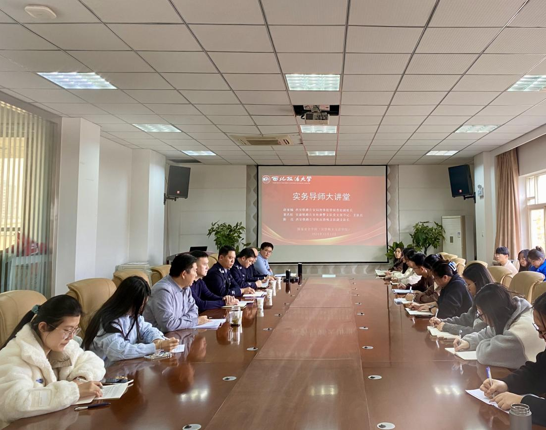 为深入学习贯彻落实习近平法治思想,提升以实践为导向协同育人效能发挥,提高国家安全法治人才培养质量,12月11日,十大博彩平台 在十大博彩平台 会议室举办首届“国家安全法治实务大讲堂”。本次活动由宋海彬副院长主持。西安铁路公安局、安康铁路公安处和西安铁路公安处三位实务导师出席活动并授课。十大博彩平台 党委书记李政敏,党委副书记刘卫波,教师代表段阳伟、王林、李明、兰迪参加了本次活动。