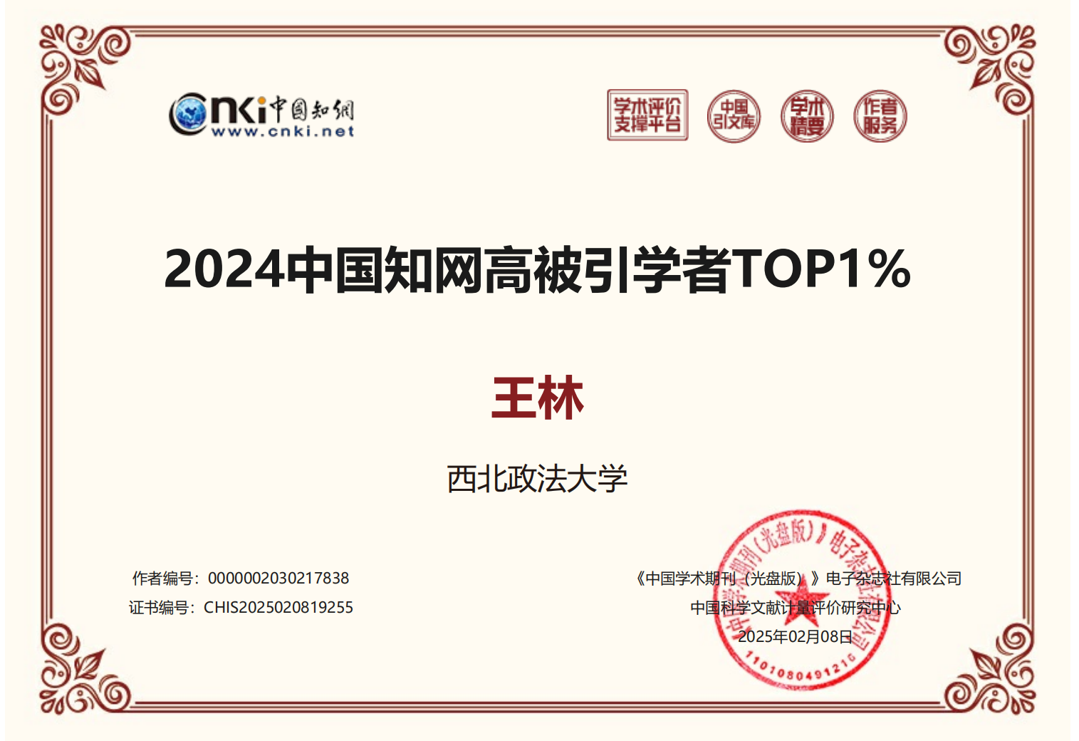 近日,中国知网的中国科学文献计量评价研究中心公布了“2024中国知网高被引学者”预发布名单。十大博彩平台 王林老师入选“2024中国知网高被引学者”。