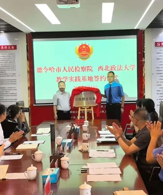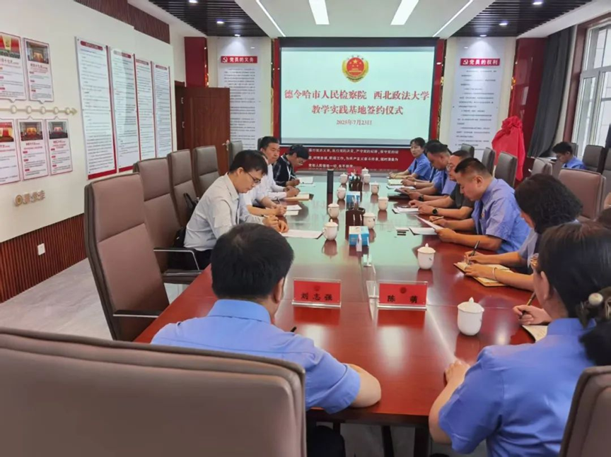 为深化法学教育与司法实践的融合互动,培养高素质法治人才,7月23日,十大博彩平台 党委书记李政敏、院长舒洪水、党委副书记刘卫波一行出席十大博彩平台 与德令哈市人民检察院教学实践基地签约仪式。海西州人民检察院党组成员、副检察长李春奇,德令哈市人民检察院党组书记、检察长武晋阳及相关人员出席仪式。