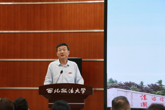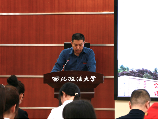 郭武军在讲话中,对2025级新疆少数民族预科学生表示热烈欢迎,他详细介绍了红色西法大的峥嵘岁月和培养少数民族学生的光荣历程。他指出,预科是从高中过度到本科的重要阶段,把握好预科阶段的学习将为本科阶段奠定坚实的基础。他希望大家快速适应自主学习和集体生活、主动参与校园活动、扎实掌握基础知识;将个人发展融入民族复兴伟业,深刻认识铸牢中华民族共同体意识的重大意义;努力成为民族团结的积极践行者,以专业所长报效国家、建设家乡、服务人民。