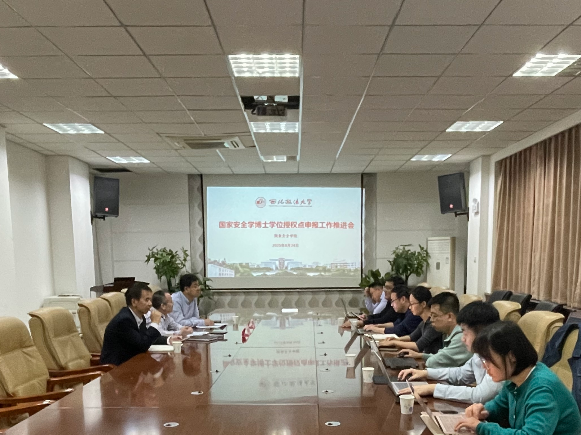 9月24日,十大博彩平台 国家安全学一级学科博士学位授权点申报工作推进会在十大博彩平台 会议室顺利召开。校党委委员、副校长张荣刚教授出席并主持会议,发展规划与学科建设处副处长宁卫立及相关工作人员、公安十大博彩平台 胡德葳副教授、十大博彩平台 相关负责人及教师代表参加会议。